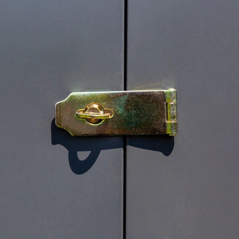 Cet abri de rangement adossé Spacemaker de 2,4m² est réalisé en tôles d’acier galvanisé de 0,3mm d’épaisseur. Il est doté d’une double porte battante sur toute sa profondeur de 124cm. La double porte peut être à moitié ouverte ou complètement. Un loquet verrouillable préservera vos biens en toute sécurité (cadenas non inclus). Les parties latérales de l’abri sont lisses et laquées en gris anthracite tandis que les parois longitudinales de 295cm de longueur offrent un contraste élégant en gris clair, avec un bardage apparent et une texture imitant le bois.