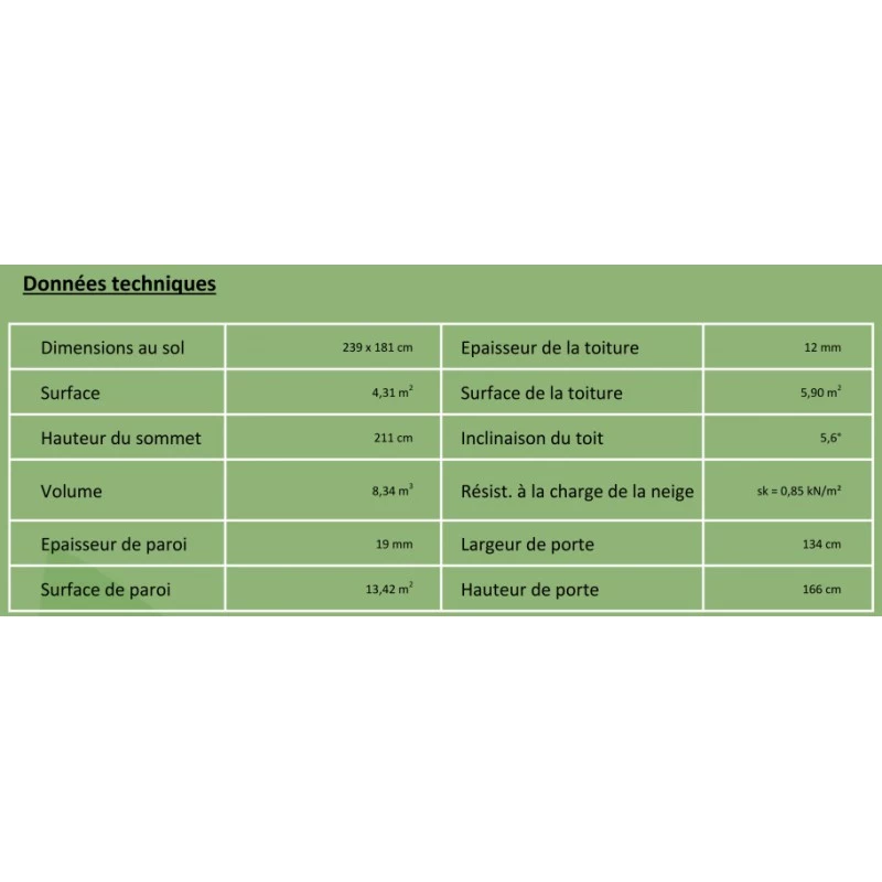 Abri De Jardin 4,31m² Skur 4 + Plancher Traité Peint Gris Baltic