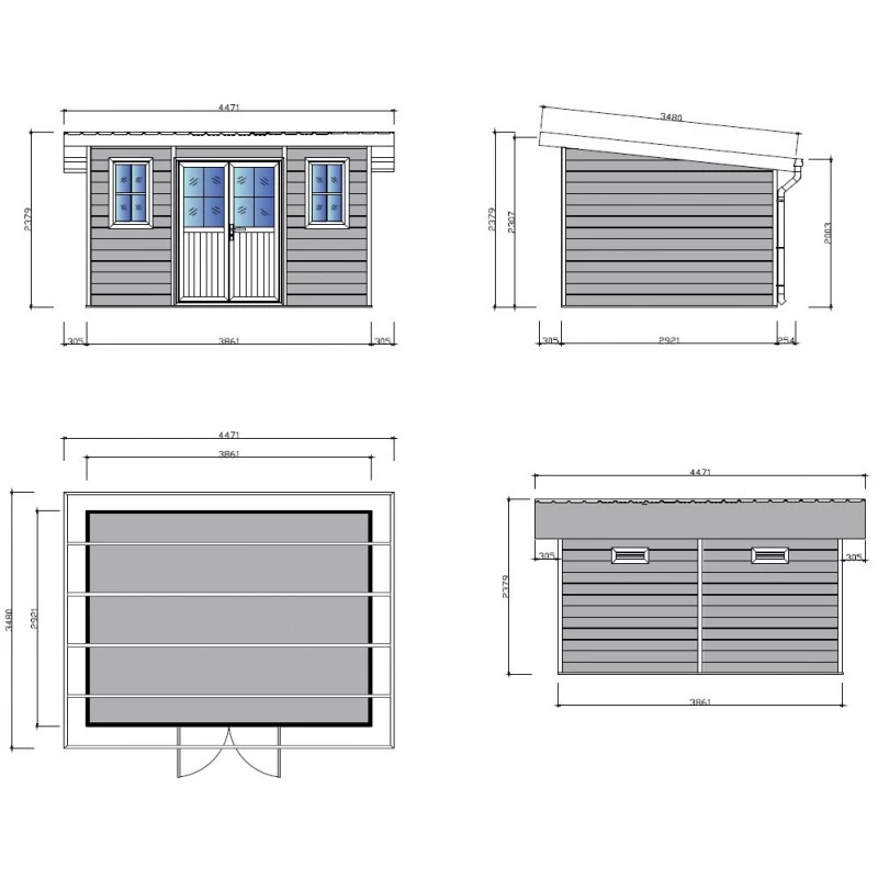 . Dimensions extérieures hors tout (lxP) : 447x348cm