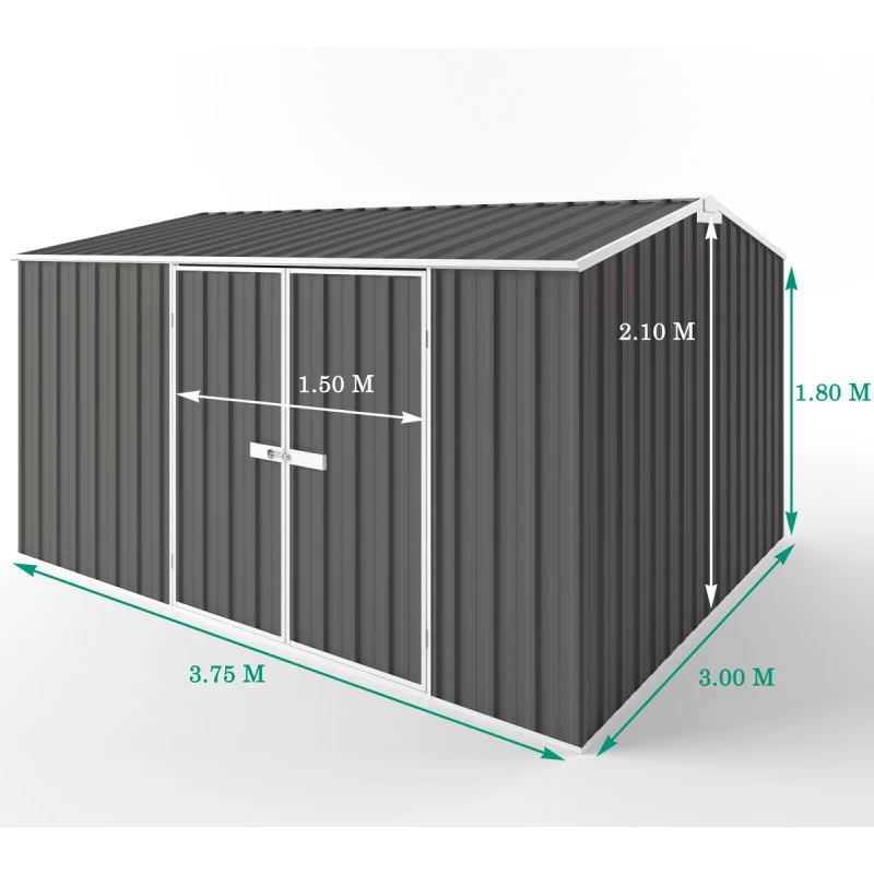 Cet abri de jardin en métal de la marque Australienne Easyshed vous offrira une surface utile d’environ 11m² et un beau volume de stockage grâce à son faîtage élevé qui atteint 210cm. Pourvu d’une grande double porte, l’abri vous assurera un large passage qui facilitera vos allées et venus et vous permettra de déplacer aisément vos objets encombrants comme votre tondeuse, par exemple.