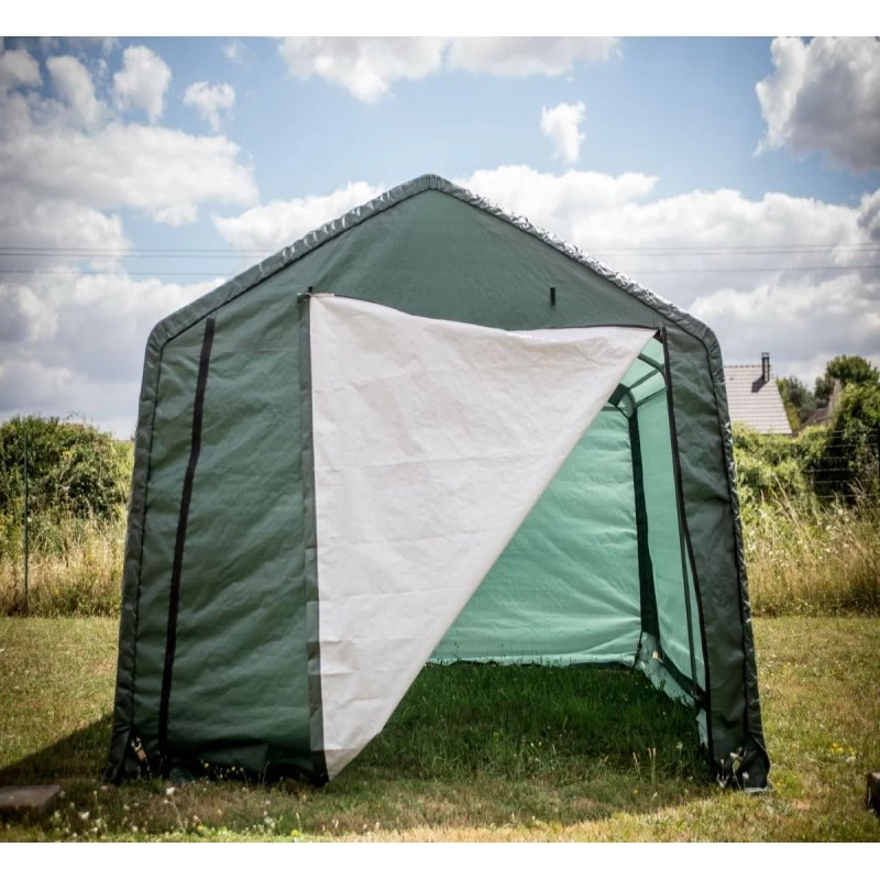 Disposant d’une superficie de 13,30m² et d’un volume utile de 32,50m³, cette cabane de rangement est assez spacieuse pour abriter tout votre mobilier de jardin, motos, vélos, remorque, bois de chauffage, sac de terreau etc. Le toit à double pente est spécialement conçu dans le but de laisser l’eau s’écouler le long des parois. Soucieux d’apporter un produit pratique et confortable, cet abri en toile renforcée est équipé d’une porte amovible à fermeture à glissière, disposant d’une large ouverture pour faciliter l’accès aux objets encombrants.