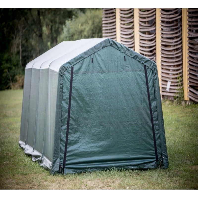 Cet abri de jardin, élaboré avec une structure tubulaire en acier traité anti-corrosion, est très simple à installer, grâce à son système de montage par clips. Il vous garantira une protection optimale de votre matériel, mobilier de jardin, tondeuse, remorque ou voiture. Sa porte amovible à fermeture à glissière offre une large ouverture pour faciliter l’accès aux objets encombrants. Le faîtage et les parois sont conçues avec une belle hauteur pour apporter un confort d’utilisation optimal autant pour le déplacement que pour le rangement d’objets volumineux.