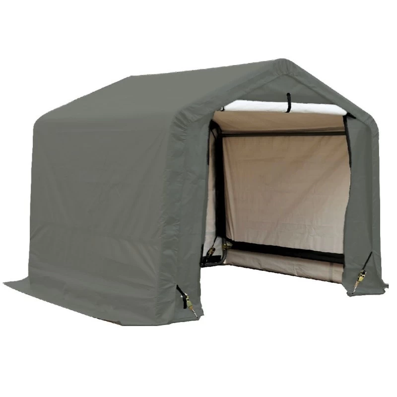 La surface utile de cet abri de jardin est optimisée par sa large porte amovible à fermeture à glissière, qui assurera un accès facile et un passage libre aux objets encombrants. Son toit est conçu en double pente afin de mieux évacuer l’eau en temps de pluie. Le système de serrage par des sangles à cliquets vous permettra de contrôler la tension de la toile pour éviter la formation de poches d’eau ou de neige.