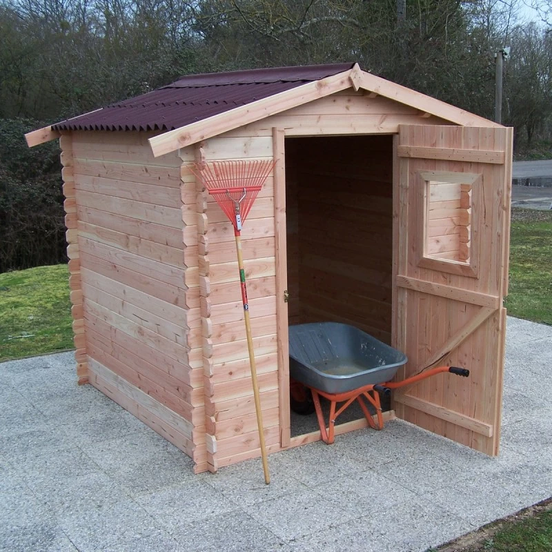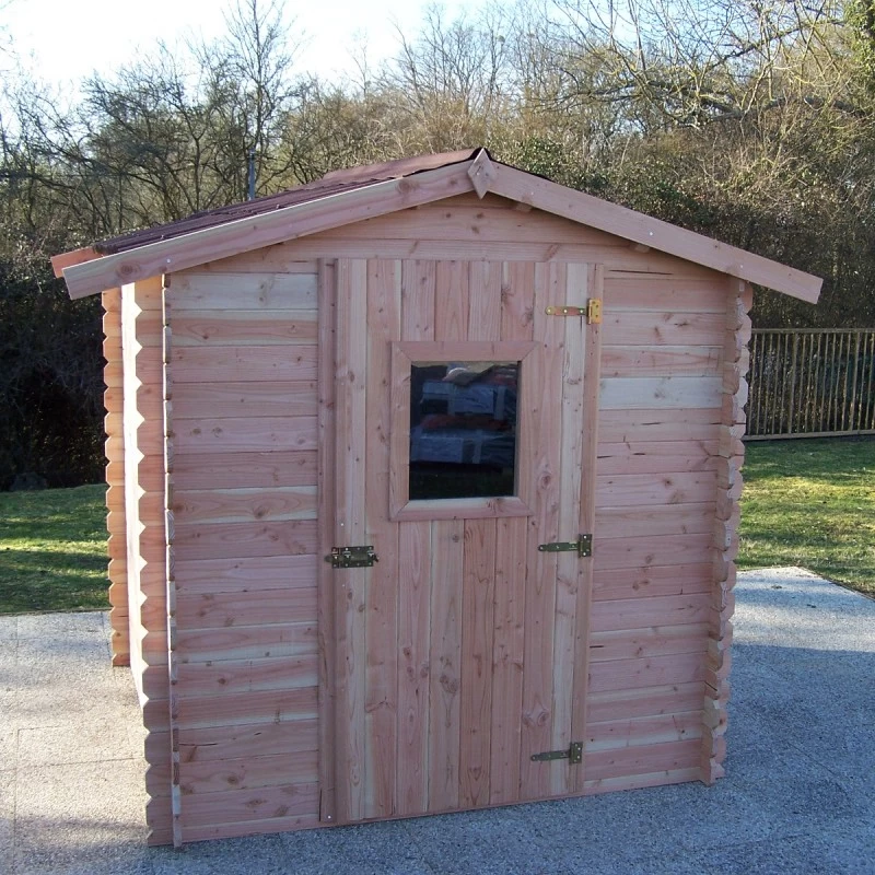 • Abri en bois de belle finition, aspect brun-rosé, naturellement durable, ne nécessitant pas de traitement chimique