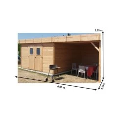 Abri Toit Plat En Douglas DINAN 20,64m² Madriers 28mm Avec Terrasse + Toiture Bac Acier – HABRITA