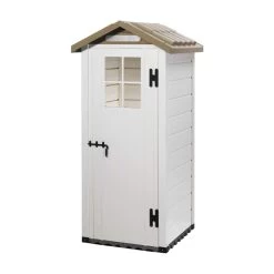 Abri De Jardin 4m² En PVC UTILITY Blanc Et Gris Vert Grosfillex + Kit Ancrage Offert
