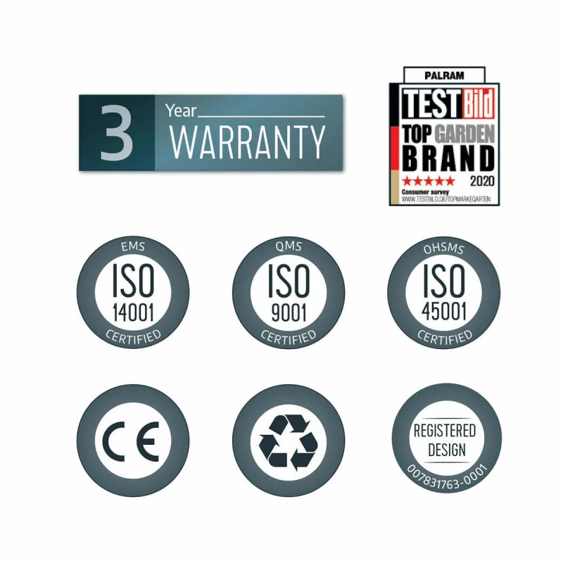 Produit de haute qualité, l’auvent Sophia™ de Canopia by Palram est fabriqué de matériaux durables et 100% recyclables ce qui accentue sa conception éco-responsable. Le panneau du toit est en acrylique de 4mm à fort impact et traité anti-UV. Sa couleur gris clair assure une transmission lumineuse à 85%. Il s’allie à merveille avec les supports en acier galvanisé qui bénéficient d’une finition grise foncée. Pour une grande robustesse, les profilés sont en alu avec un revêtement par poudrage très efficace contre la rouille.