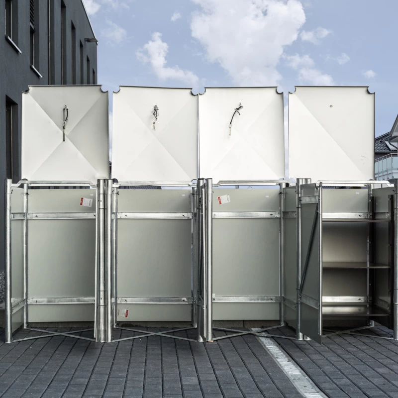 Avec ses 4 compartiments, le cache-poubelle Hide vous permettra de pratiquer un tri sélectif en un simple geste. Réalisé avec des matériaux de première qualité, ce cache-poubelle accueille 4 conteneurs à déchets d’un volume de 140L chacun. Le cadre est en acier galvanisé à chaud et les parois sont réalisées en aluminium composite, pour une durabilité et une solidité inégalées.