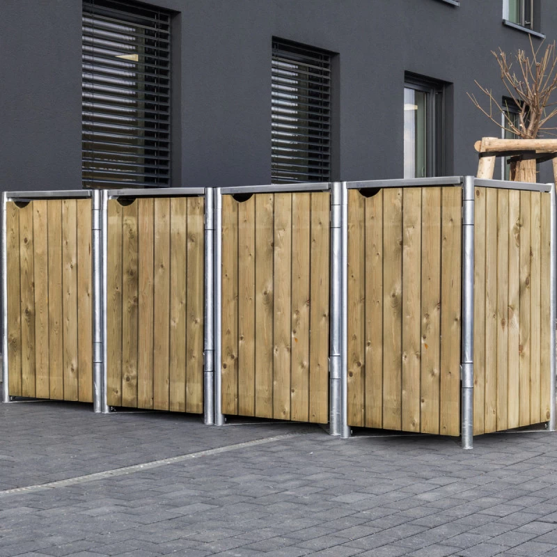 Avec ses 4 compartiments, le cache-poubelle Hide vous permettra de pratiquer un tri sélectif en un simple geste. Réalisé avec des matériaux de première qualité, ce cache-poubelle accueille 4 conteneurs à déchets d’un volume de 140L chacun. Le cadre est en acier galvanisé à chaud et les parois sont planchettes de pin traité, pour une durabilité et une solidité inégalées. Le pin a subi un traitement par imprégnation, contre les moisissures et les insectes xylophages. Le bois utilisé est certifié PEFC et provient de forêts gérées de façon responsable et dans le respect de l’environnement.