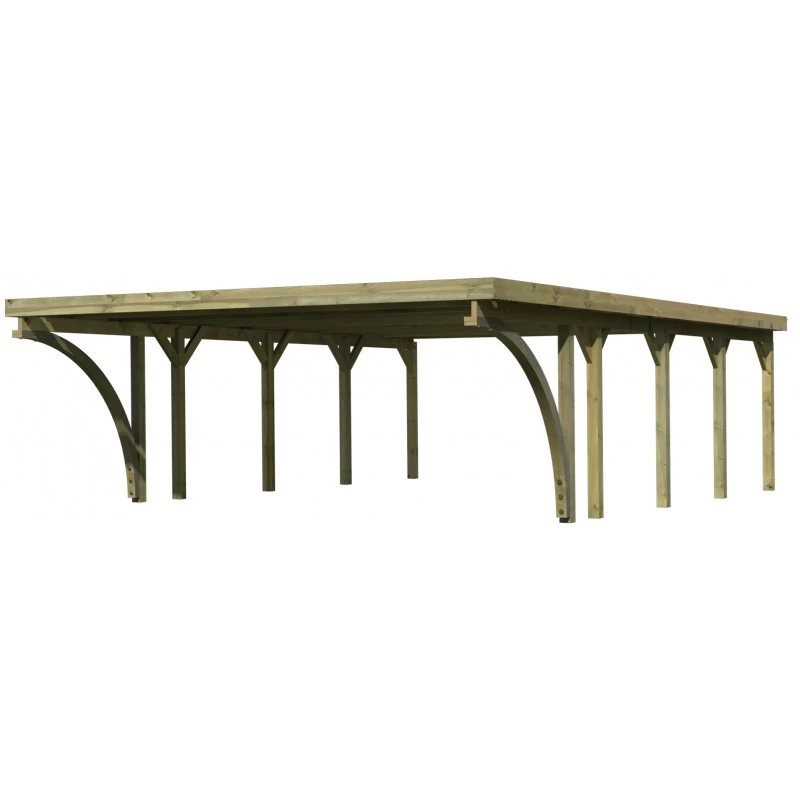 Carport Pin Autoclave 40,2m² Classic Double 2 + Toit Acier + 2 Arcs Karibu