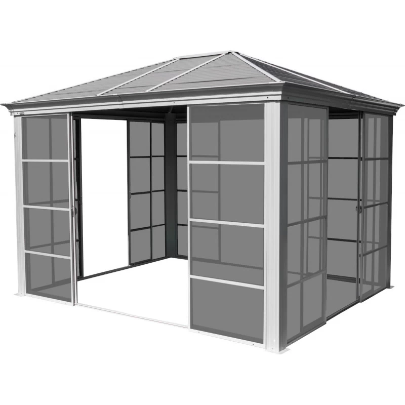 L’avis du spécialiste sur le pavillon Striano 362x427cm en aluminium et acier galvanisé avec moustiquaires – SOJAG