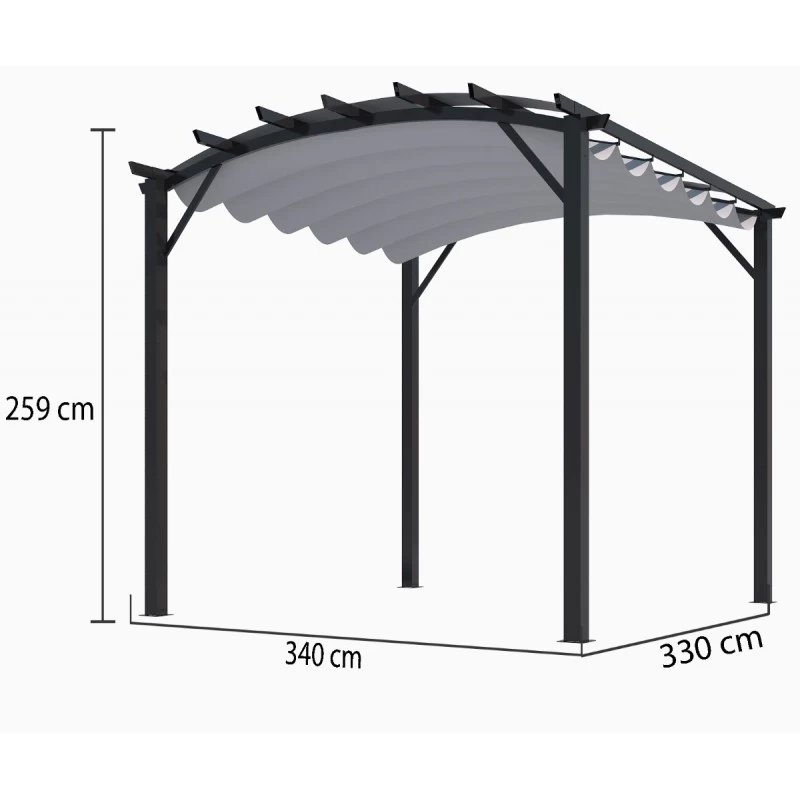 L’avis du spécialiste au sujet de la pergola arche aluminium/acier gris anthracite 11,22m² avec toit en toile polyester 140gr/m² gris HABRITA