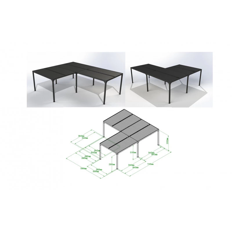 Modèle unique sur le marché avec sa conception en « L », cette pergola en alu Habrita vous offrira une surface couverte de plus de 32m² pour accueillir entre 20 et 30 personnes ! Son design innovant vous permettra de créer 3 espaces de détente différents et indépendants l’un de l’autre. Ainsi, vous pouvez vous reposer, travailler et recevoir des amis en un seul endroit !