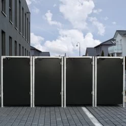 Cache-poubelle 4 Compartiments Müllbox En Bois Traité Gris 4x240L – HIDE