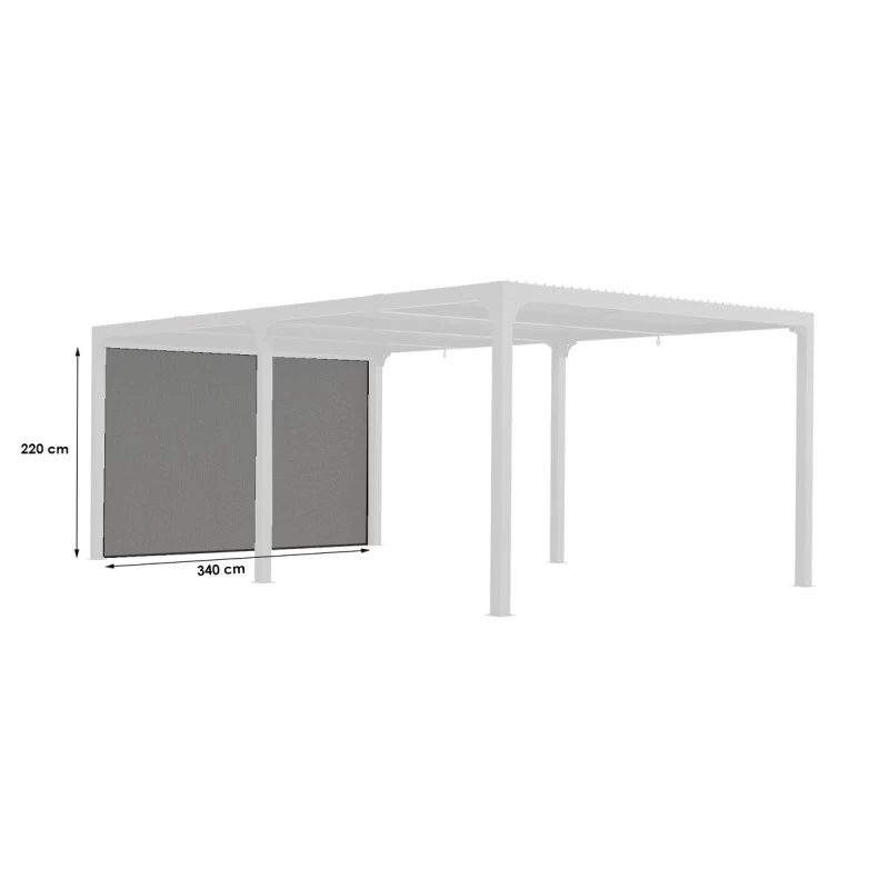 L’avis du spécialiste sur le rideau en PVC tissé gris pour côté 3,60m de la pergola bioclimatique alu 10,80m² et 21,52m² Habrita :