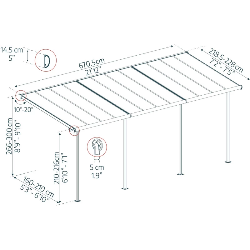 L’avis du spĂ©cialiste sur le toit de terrasse 224x670cm en aluminium gris et polycarbonate 6mm SIERRA – Canopia by Palram :