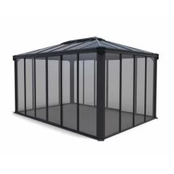 Robuste, la construction de cette tonnelle de jardin Dallas de Canopia by Palram est réalisée en aluminium avec connecteurs en acier galvanisé découpés au laser pour une stabilité idéale. Le revêtement en poudre anthracite est très efficace contre la rouille et apporte une note tendance dans votre extérieur.